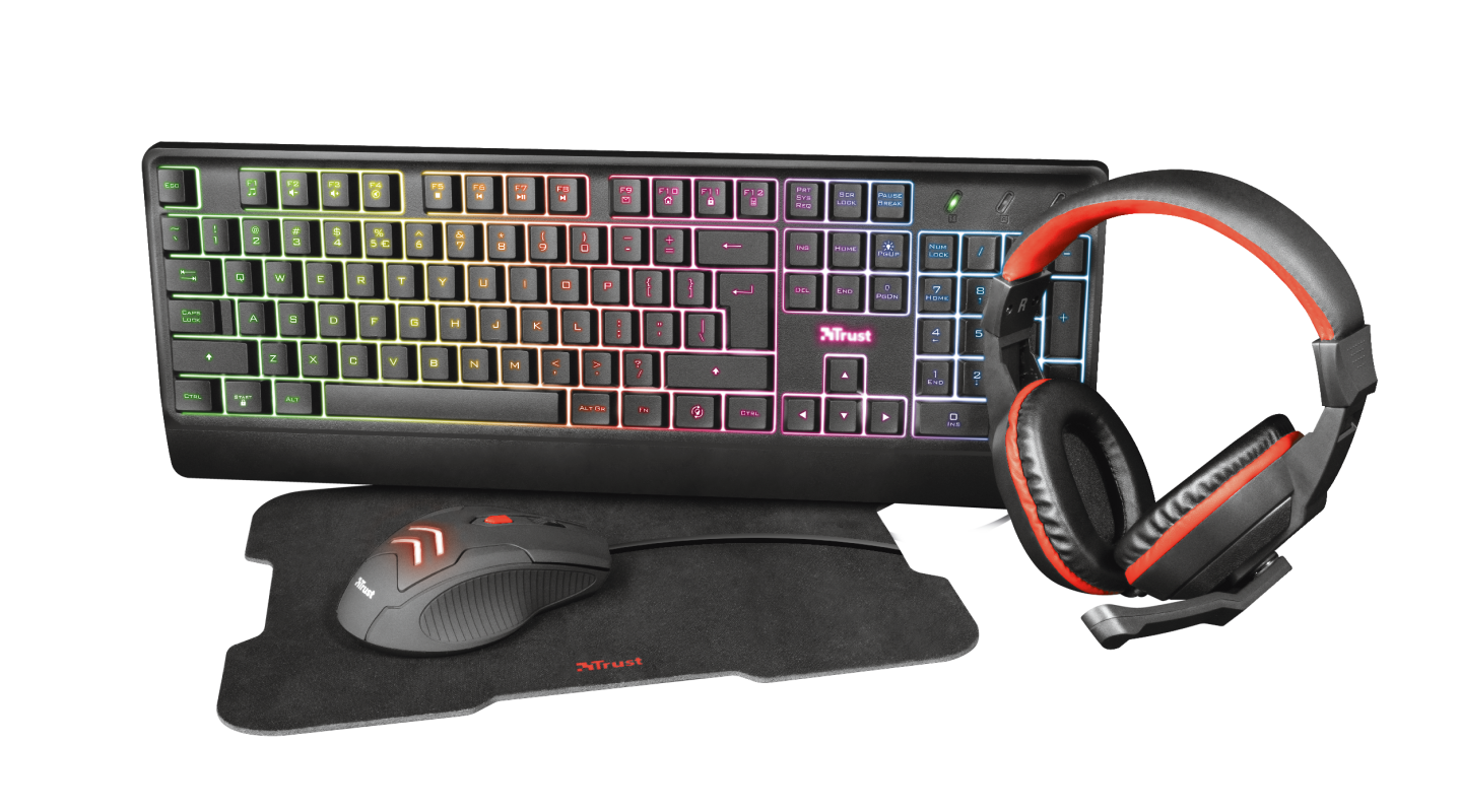 Kit Trust Ziva 4-in-1 Gaming Bundle, contine mouse, tastatura, mousepad
