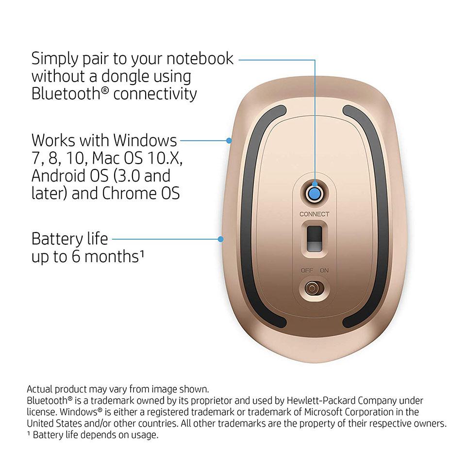 HP mouse Z5000 bluetooth standard negru/auriu. Dimensiune: 101.7 x 64.6 x 25 mm. Greutate: 40g