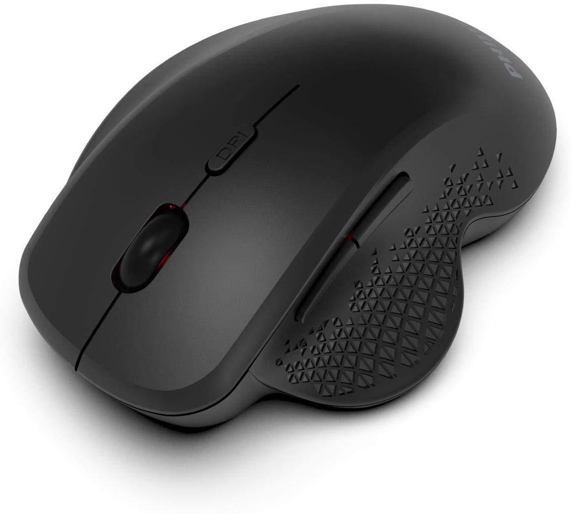 Philips SPK7624 Wireless Mouse Technical specifications • Product Type: Wireless mouse • Design Type: Ergonomic design • Connectivity: 2.4 GHz wireless connection, 10 metres effective wireless connection distance • Buttons: 6 Buttons • Optical Sensor Precision: 800/1200/2400/ 3200 DPI, DPI adjustable between 4 levels • Driver Requirement: Driver-free • Handed Type: Left- and right-handed • Coating Type: Matte Physical Dimensions • Dimensions (L x W x H): 112 x 81 x 47 mm • Weight: 124 g OS/System Requirements • System Requirements: Microsoft Windows XP, Windows Vista, Windows 7, Windows 8, Windows 10 or later; Linux; Mac OS