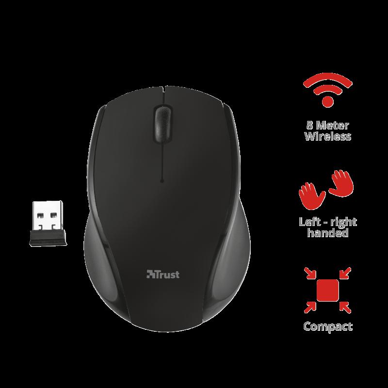 Mouse fara fir Trust Oni Micro Wireless Mouse – black Specifications General Height of main product (in mm) 81 mm Width of main product (in mm) 55 mm Depth of main product (in mm) 30 mm Total weight 51 g Formfactor compact Ergonomic design no Connectivity Connection type wireless Bluetooth no Wireless protocols RF 2.4GHz Wireless range 8 m Receiver included yes USB version 1.0 Connector type USB Features Silent click no Gliding pads UPE Software no USB receiver storable no DPI adjustable no Power saving yes Gaming Designed for gaming no Lighting Lights no Power Batteries included yes Battery life (months) 6 month Rechargeable battery no Number of batteries 1 Wireless transmission power (mW) 1 mW Battery type (AA, AAA, etc.) AAA Input Power source battery Sensor DPI 1200 Sensor technology optical Compatibility Compatible Device Types pc, laptop Compatible Software Platforms Windows, Mac OS, Chrome OS Control Grip type finger Horizontal scrolling no Controls left, right, mid Number of buttons 3 DPI button no On/off button no Programmable buttons no Adjustable weight no Suitable surface non-reflective flat surface Left-right handed use right-handed, left-handed Scroll wheel yes Trackball no