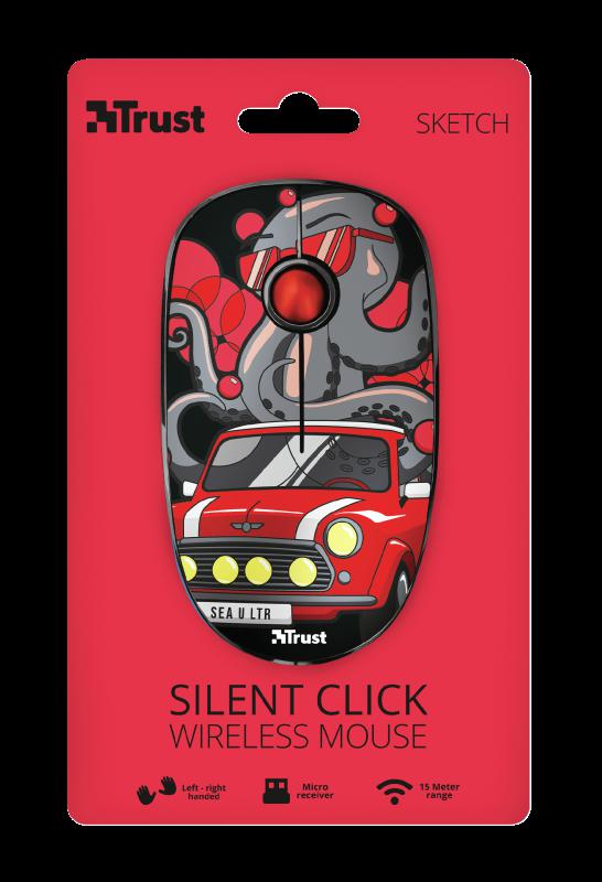 MouseMouse Trust Sketch Silent Click, Wireless, rosu